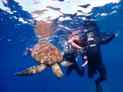 体験ダイビング後のシュノーケリングでは、なんとウミガメ にも会うことができました!